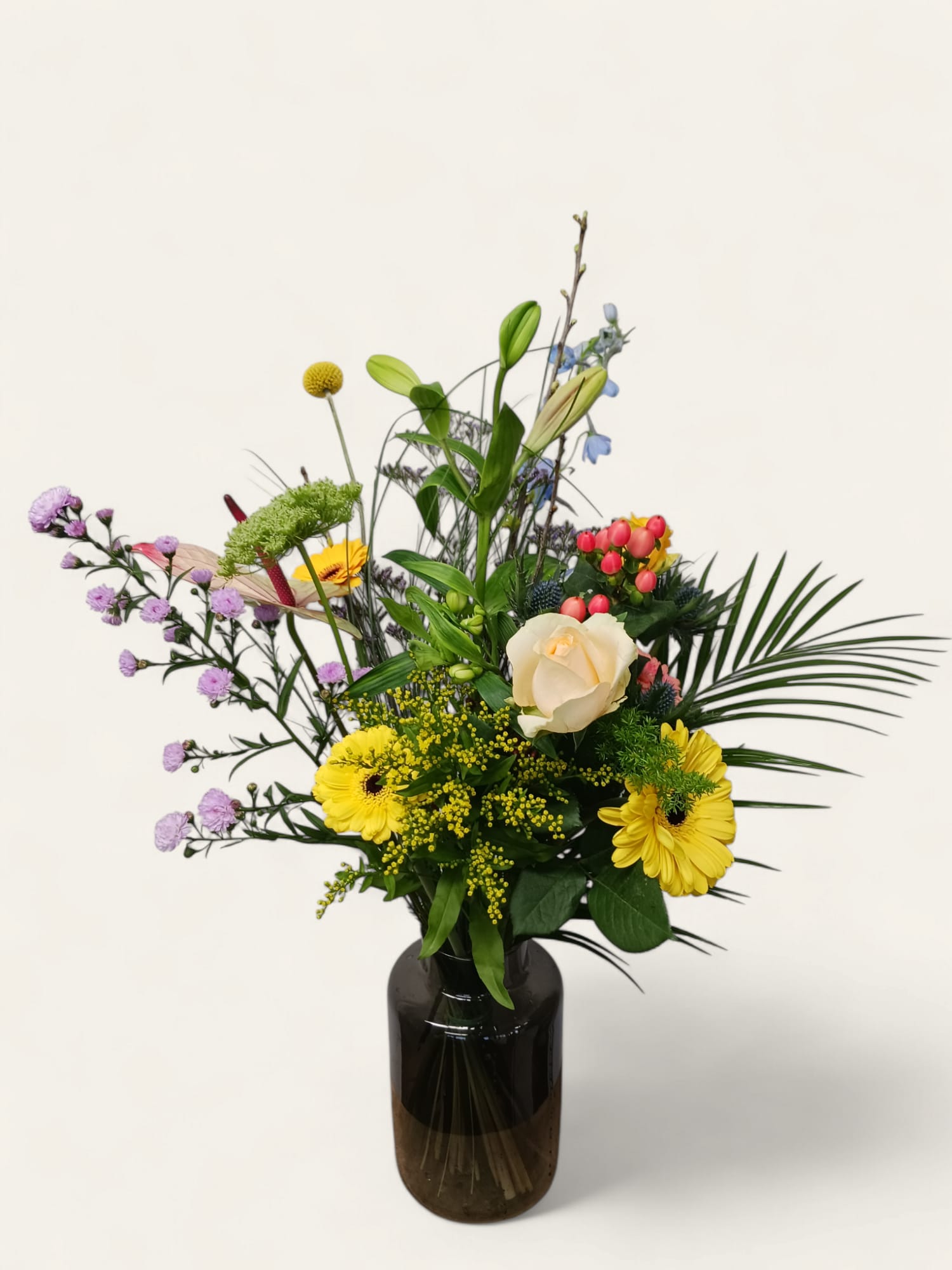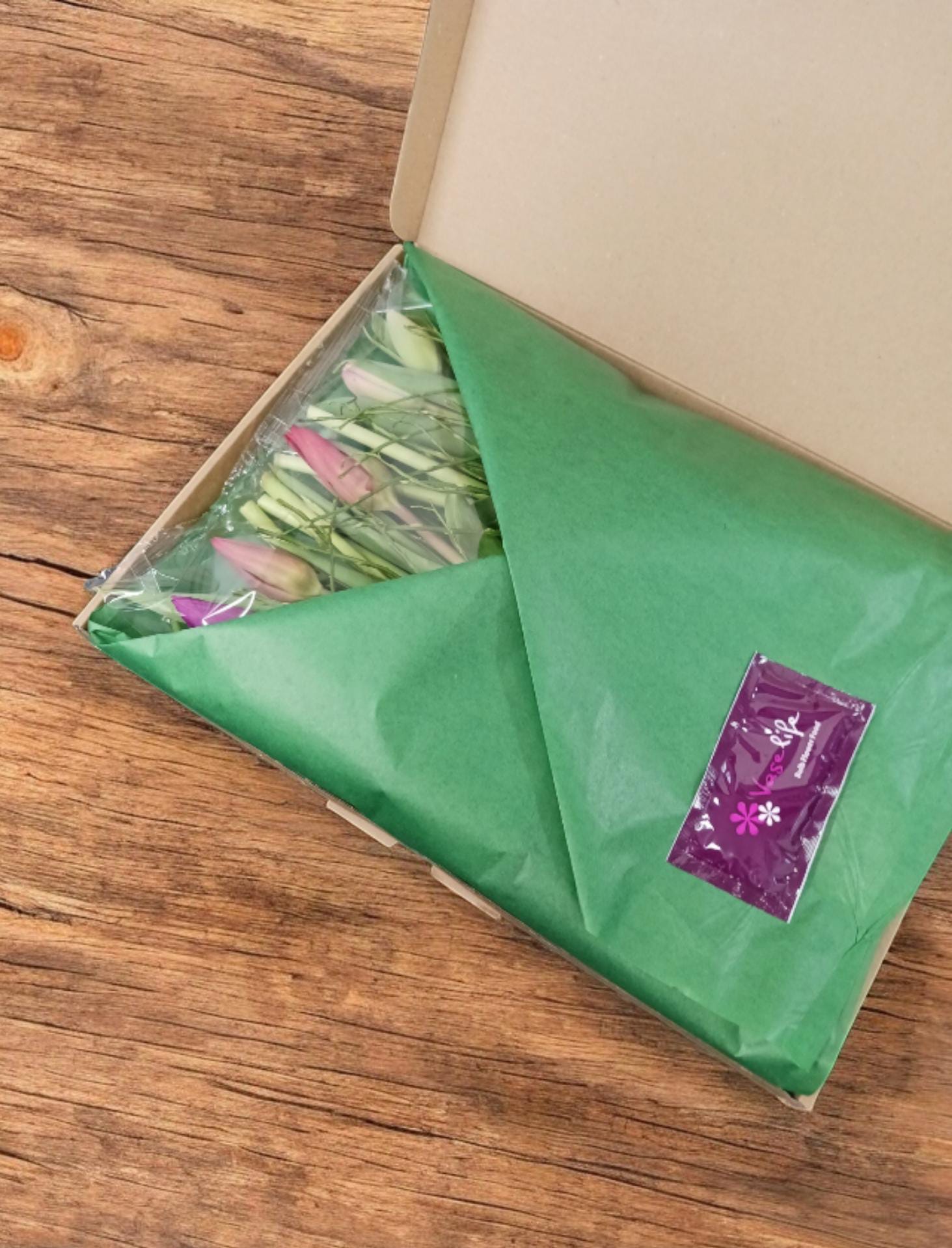 Haben Sie spezielle Verpackungswünsche oder wollen Sie der Sendung etwas hinzufügen, einmalig oder in Massen; alles ist machbar. Ob Briefkastenpost oder die Verwendung eines Kartons mit Ihrem eigenen Design. Wir denken gerne mit Ihnen mit! Wir versenden und liefern Blumenprodukte in einer speziell für den Transport konzipierten Vase, einschlie&szig;lich Blumennahrung.